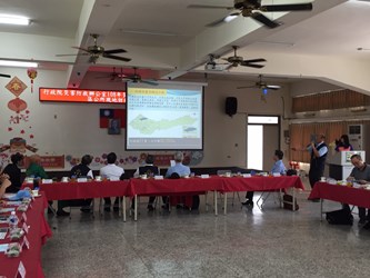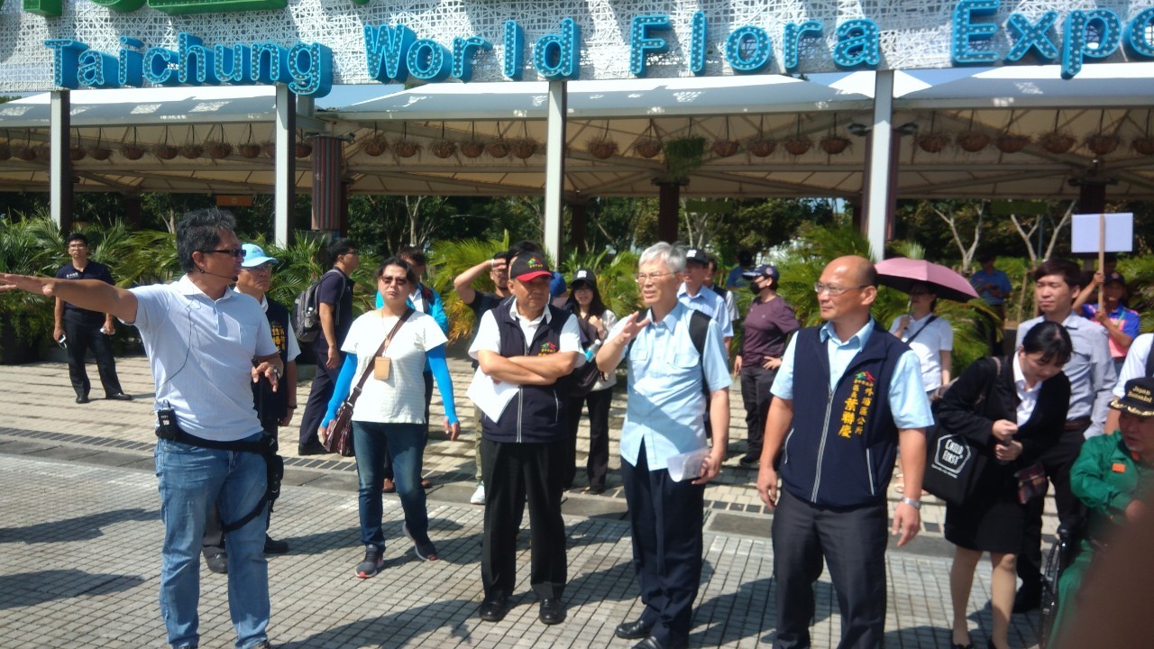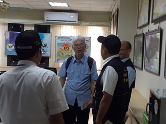 行政院災害防救辦公室今日首先到外埔區公所聽取災防工作簡報,隨後也前往觀摩花博外埔園區滯洪池等設施,並檢視外埔國小避難收容處所開設狀況。台中市政府由陳副秘書長率領台中市災害防救辦公室、消防局、水利局、農業局、社會局、教育局、區公所與會。