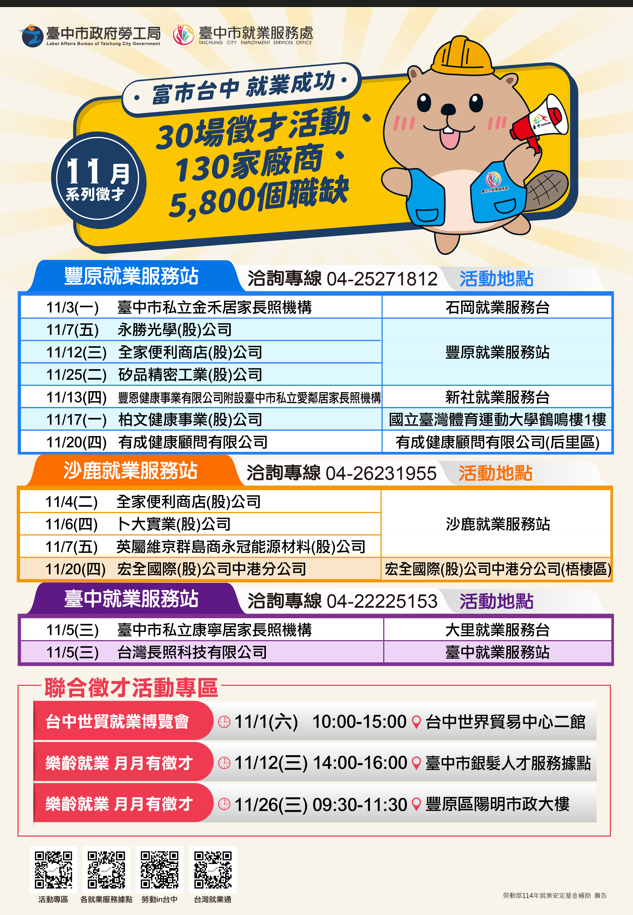「富市台中 就業成功」11月系列徵才活動資訊